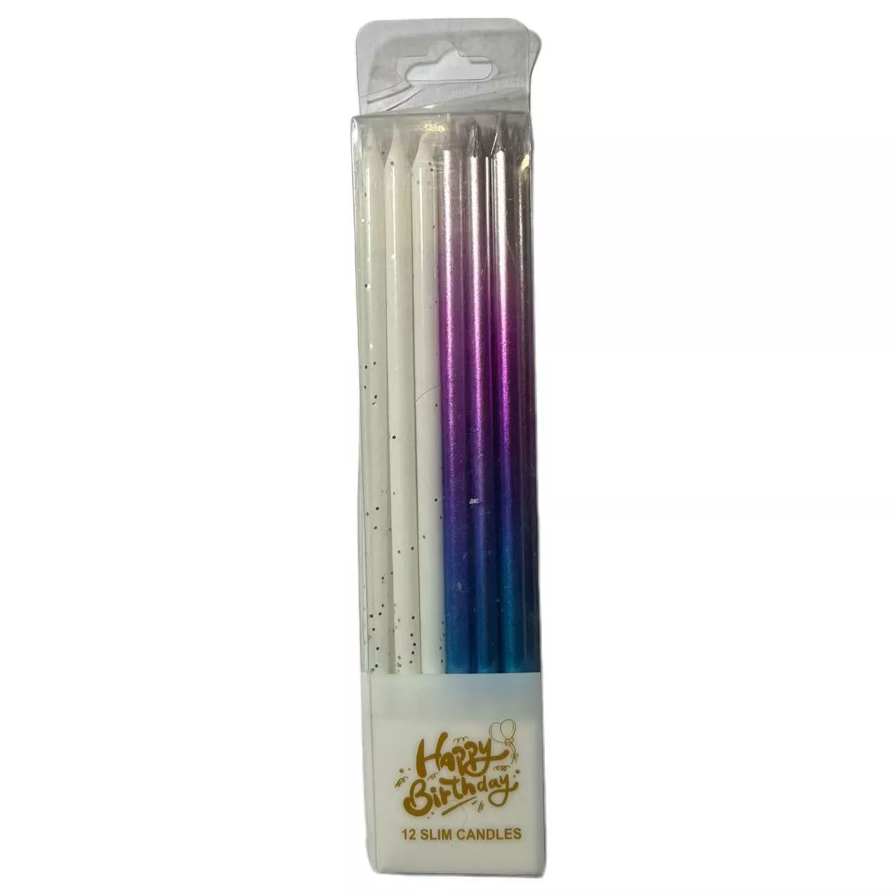 Graduated Pink Foil And White Glitter Long Candles 12pcs Per Pack