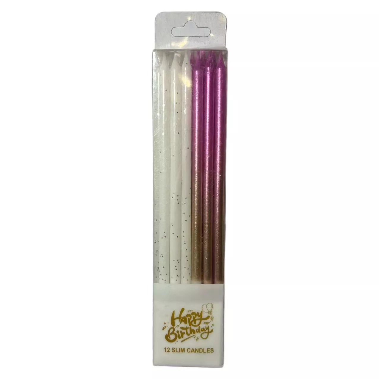 Graduated Rose Golden Foil And White Glitter Long Candles 12pcs Per Pack