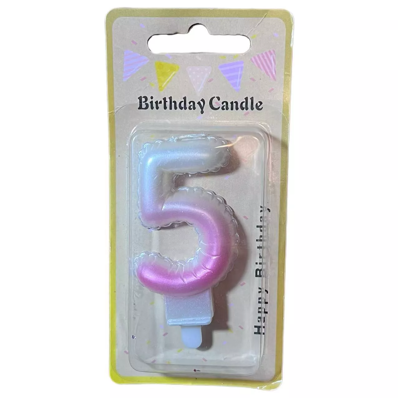 Pink Gradual Pearl Print Number Birthday Candle-5