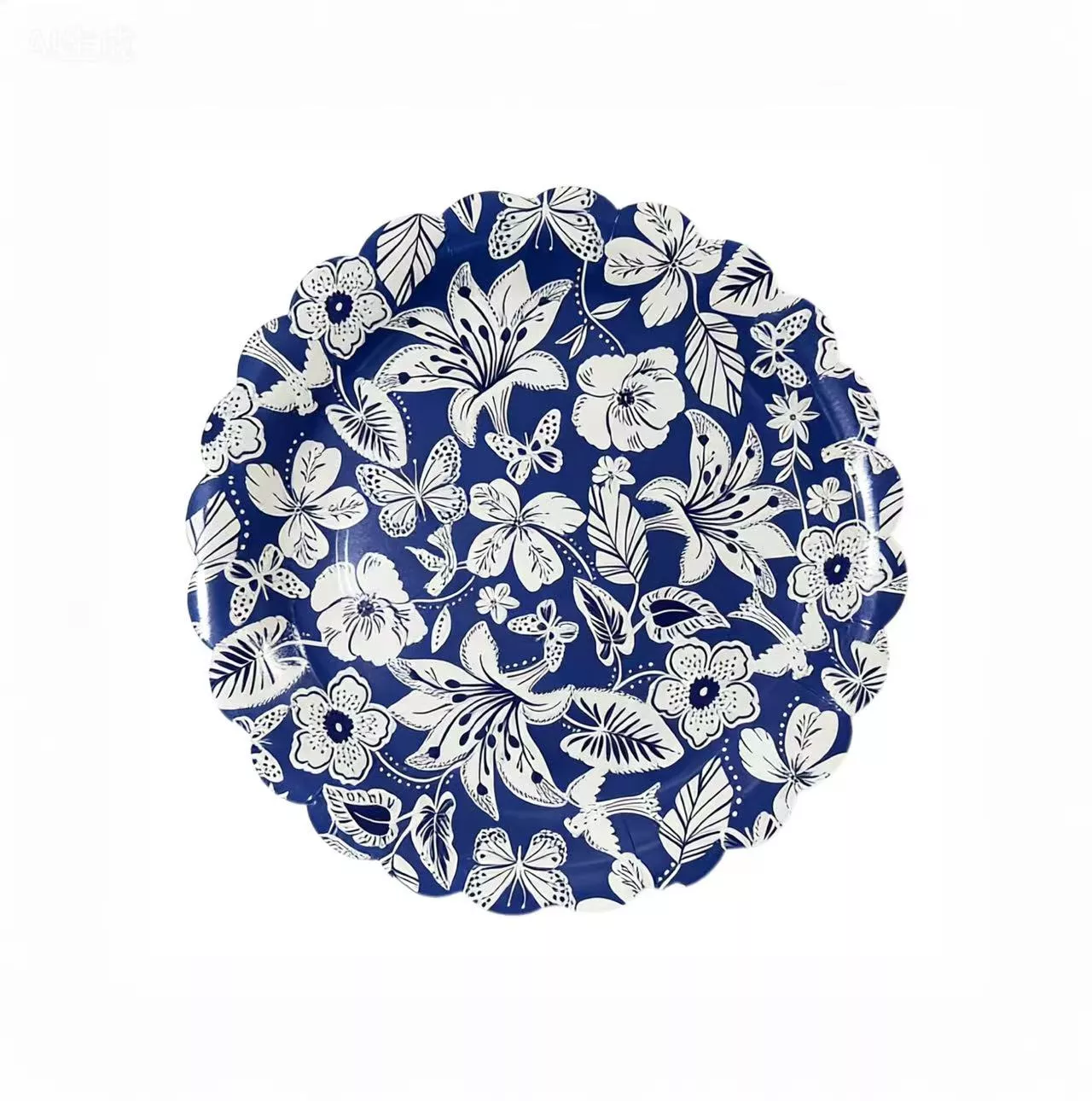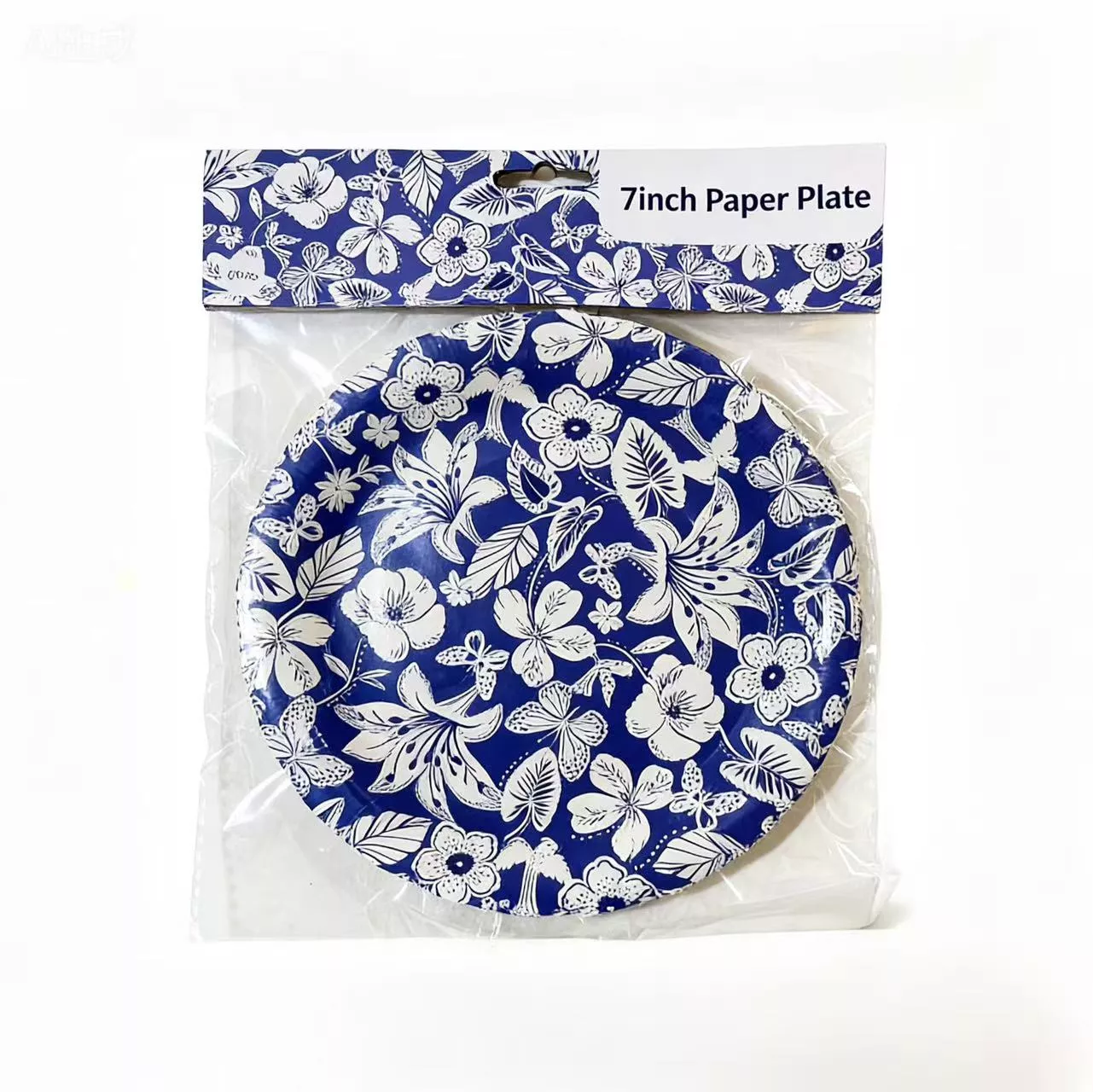 7 Inch Blue Flower Wave Paper Plate 6pcs