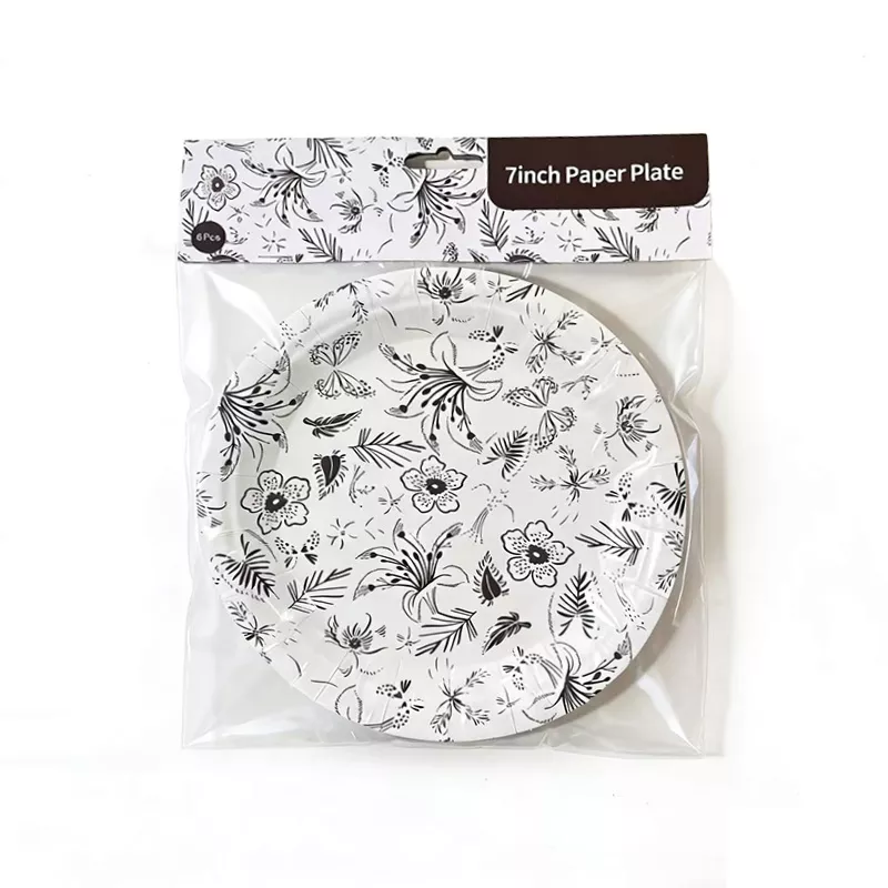 7 Inch Brown Flower Paper Plate 6pcs