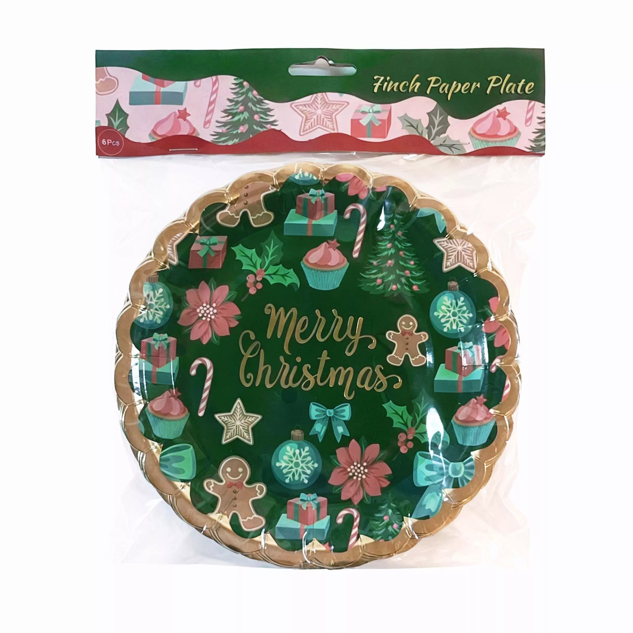 7 inch Christmas green wave paper plate 6pcs
