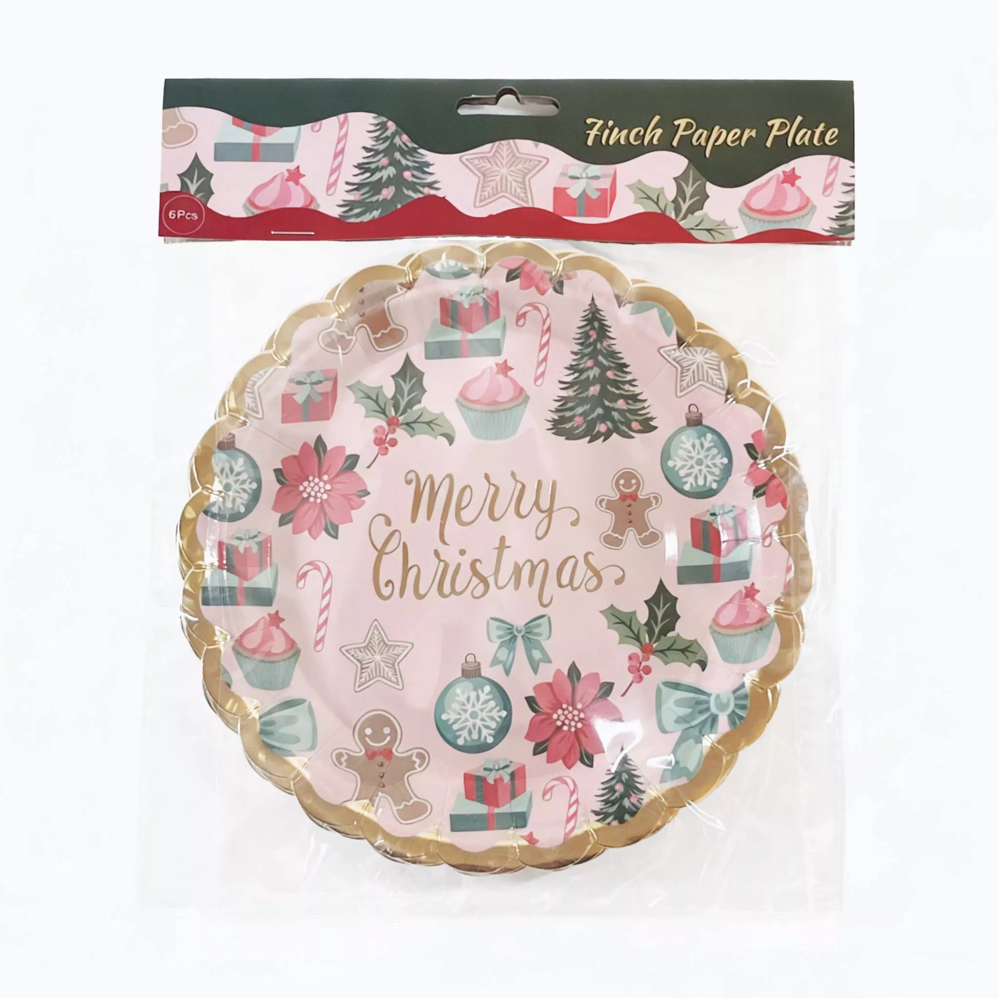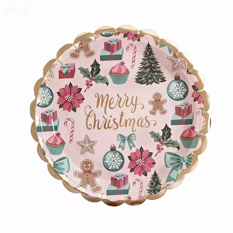 7 inch Christmas pink wave paper plate 6pcs