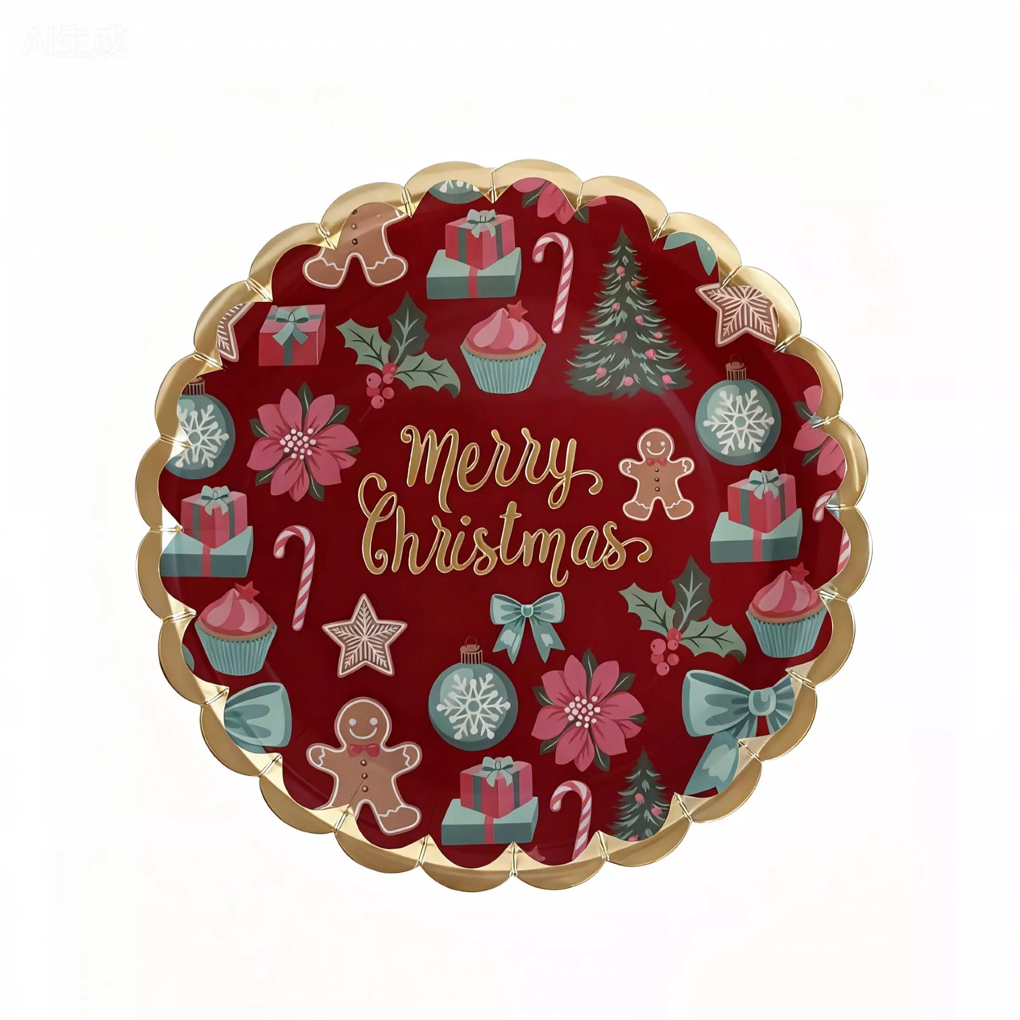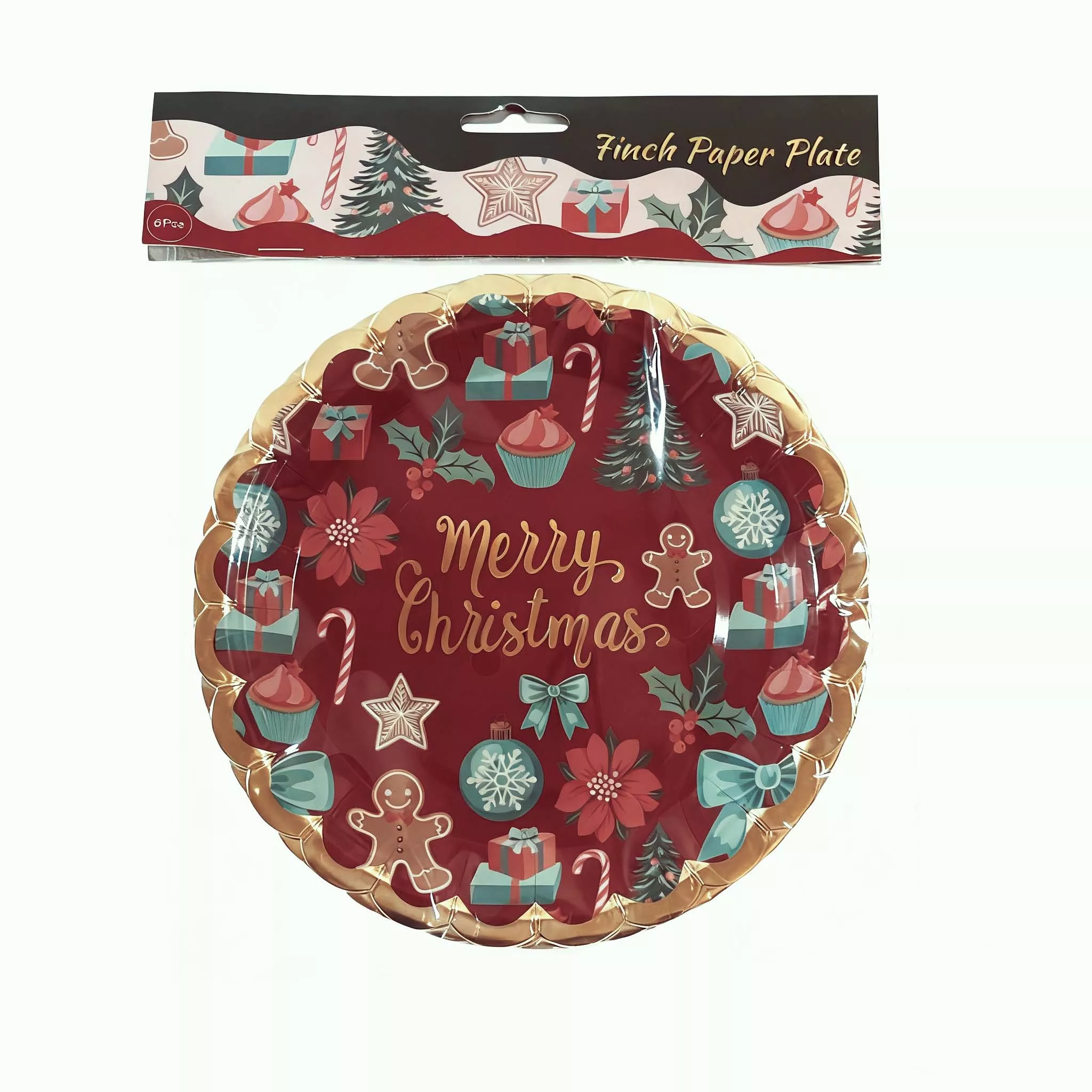 7 inch x'mas red wave paper plate 6pcs