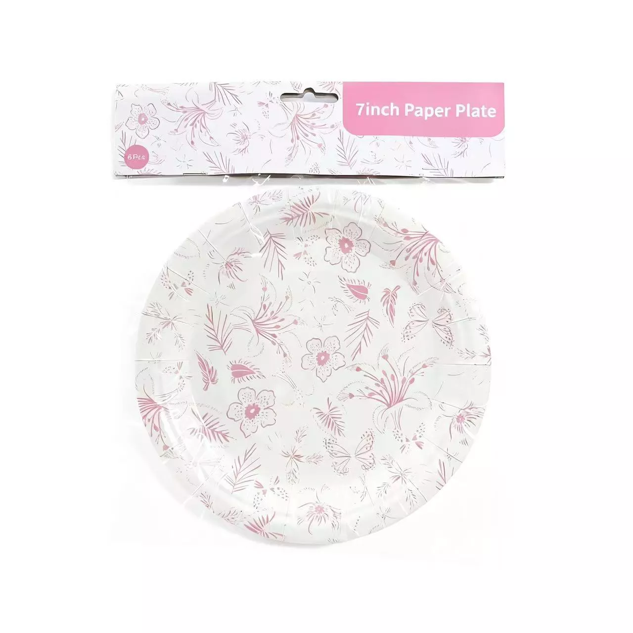 7 Inch Pink Flower Paper Plate 6pcs