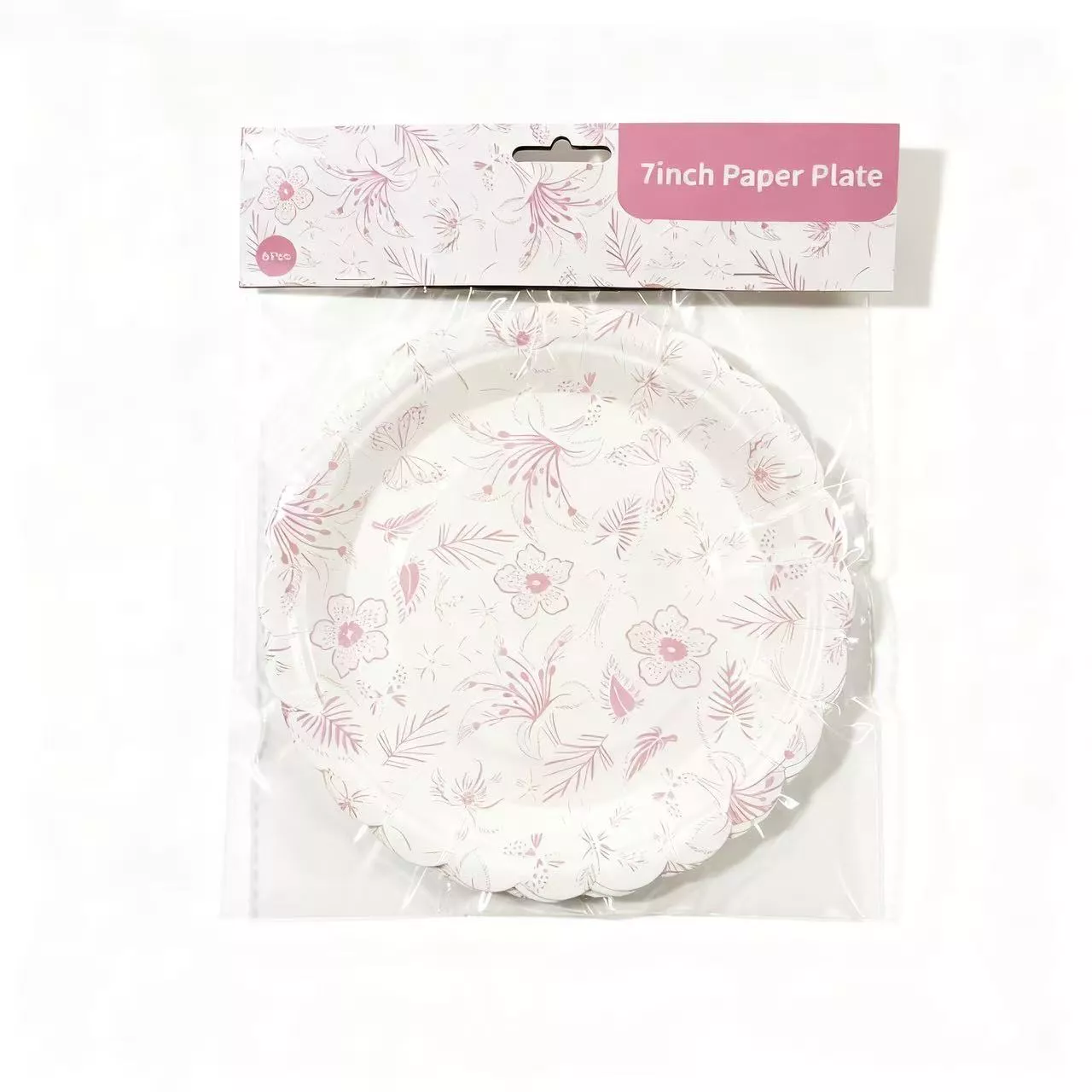7 Inch Pink Flower Wave Paper Plate 6pcs