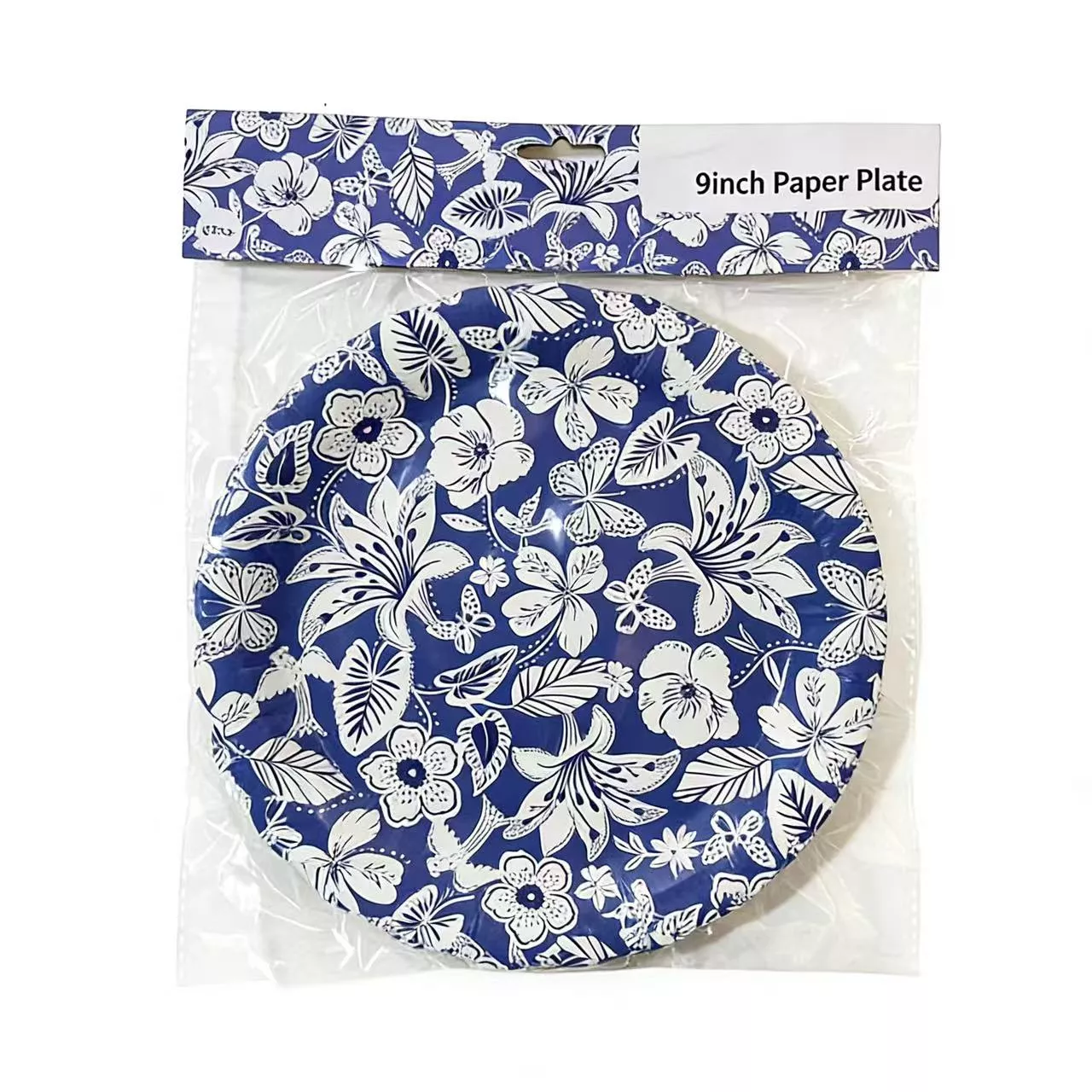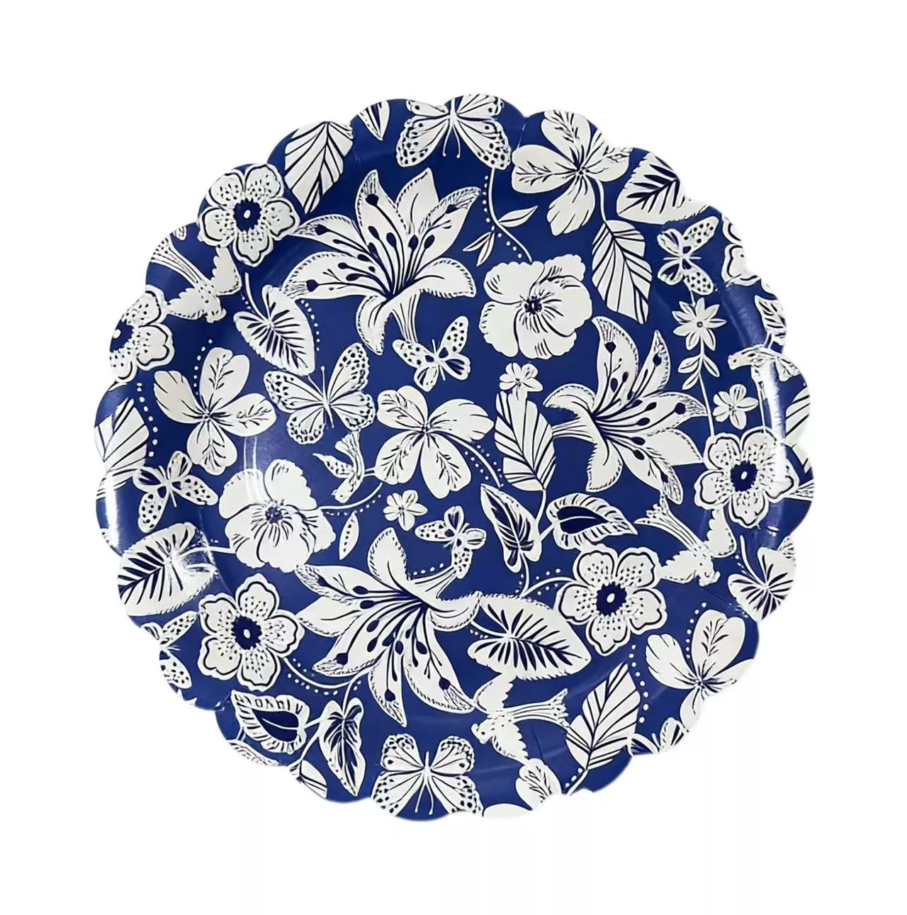 9 Inch Blue Flower Wave Paper Plate 6pcs