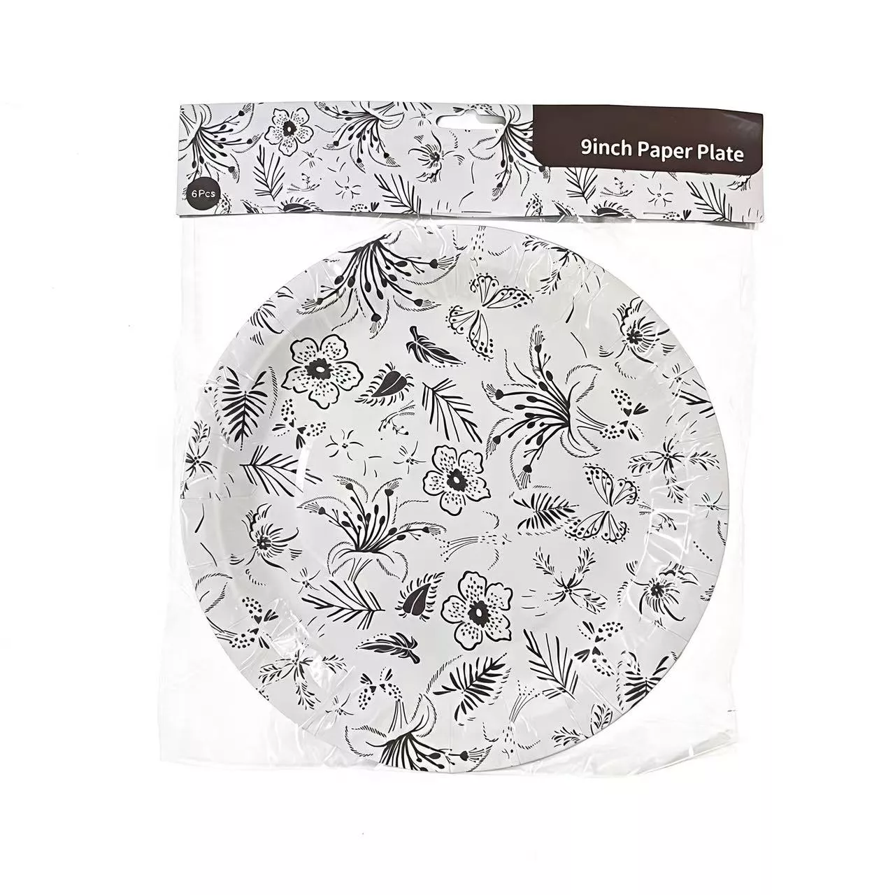 9 Inch Brown Flower Paper Plate 6pcs