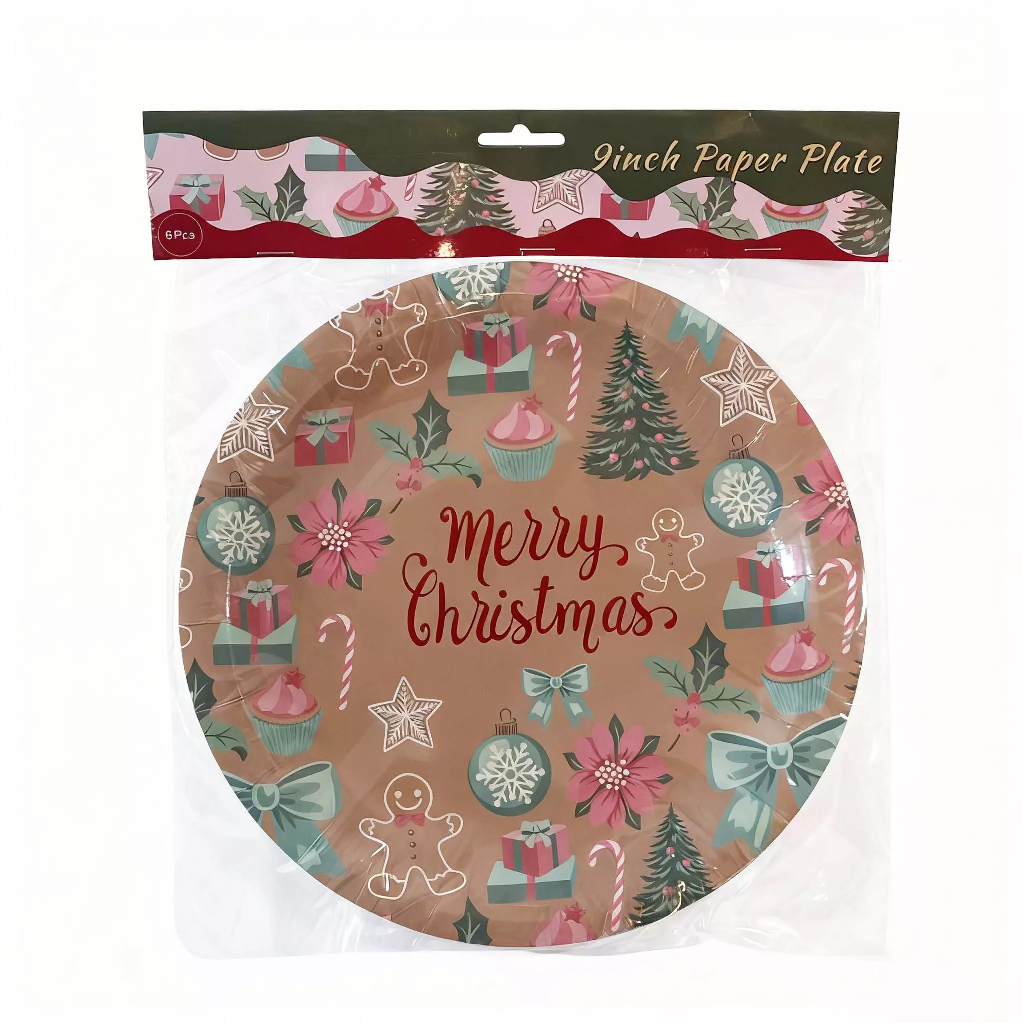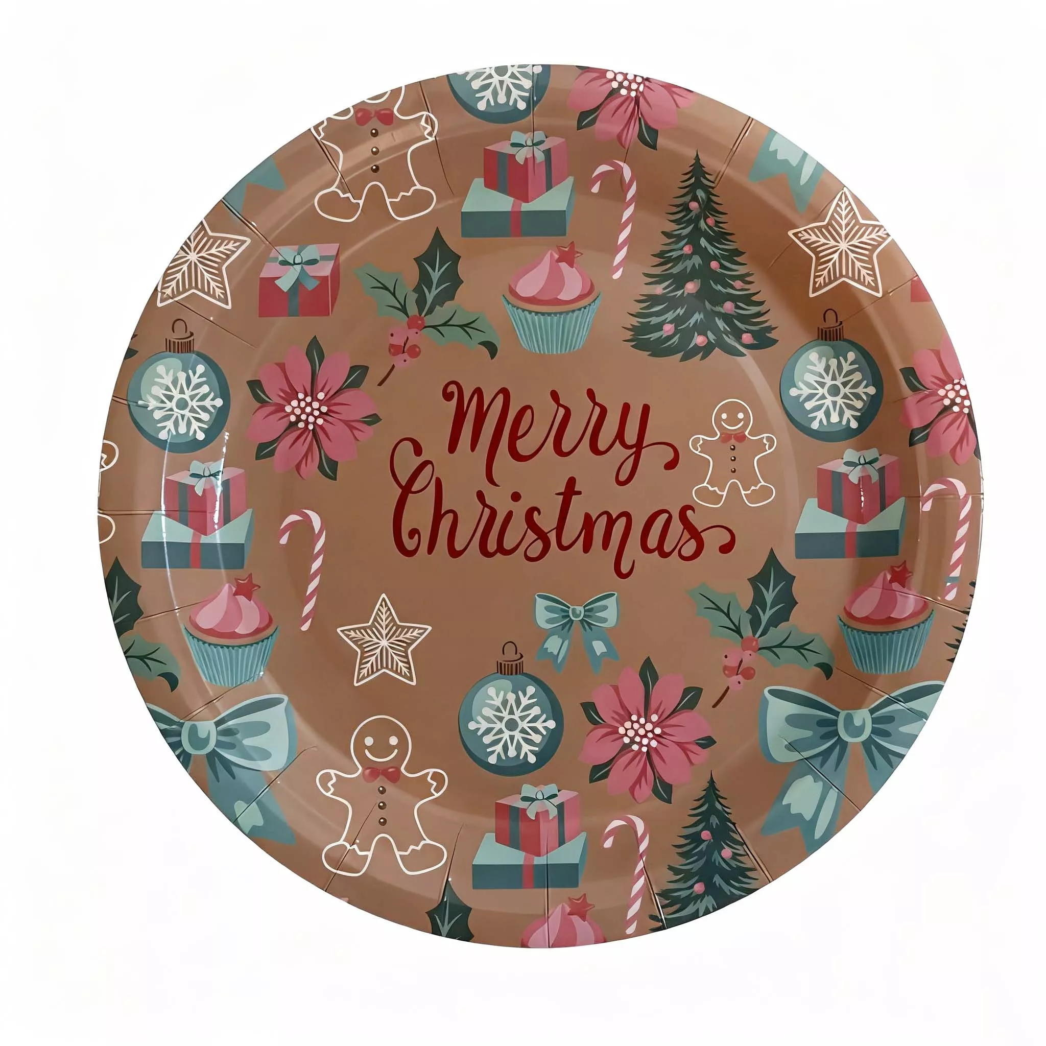 9 Inch Christmas Brown Paper Plate 6pcs