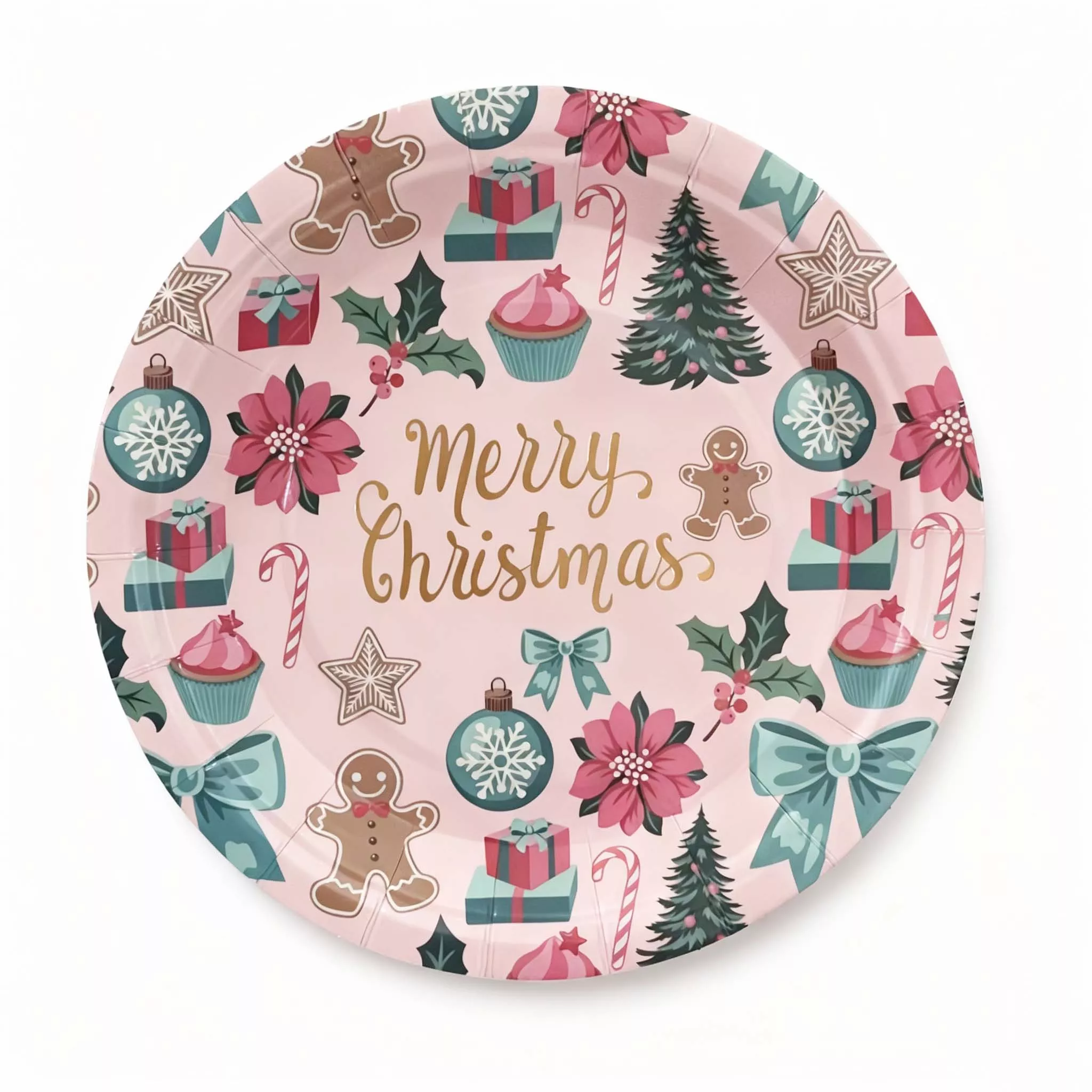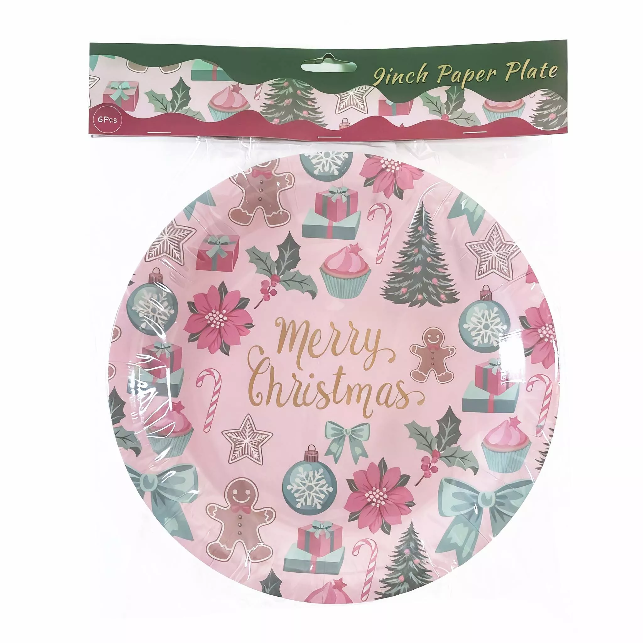 9 Inch Christmas Pink Paper Plate 6pcs