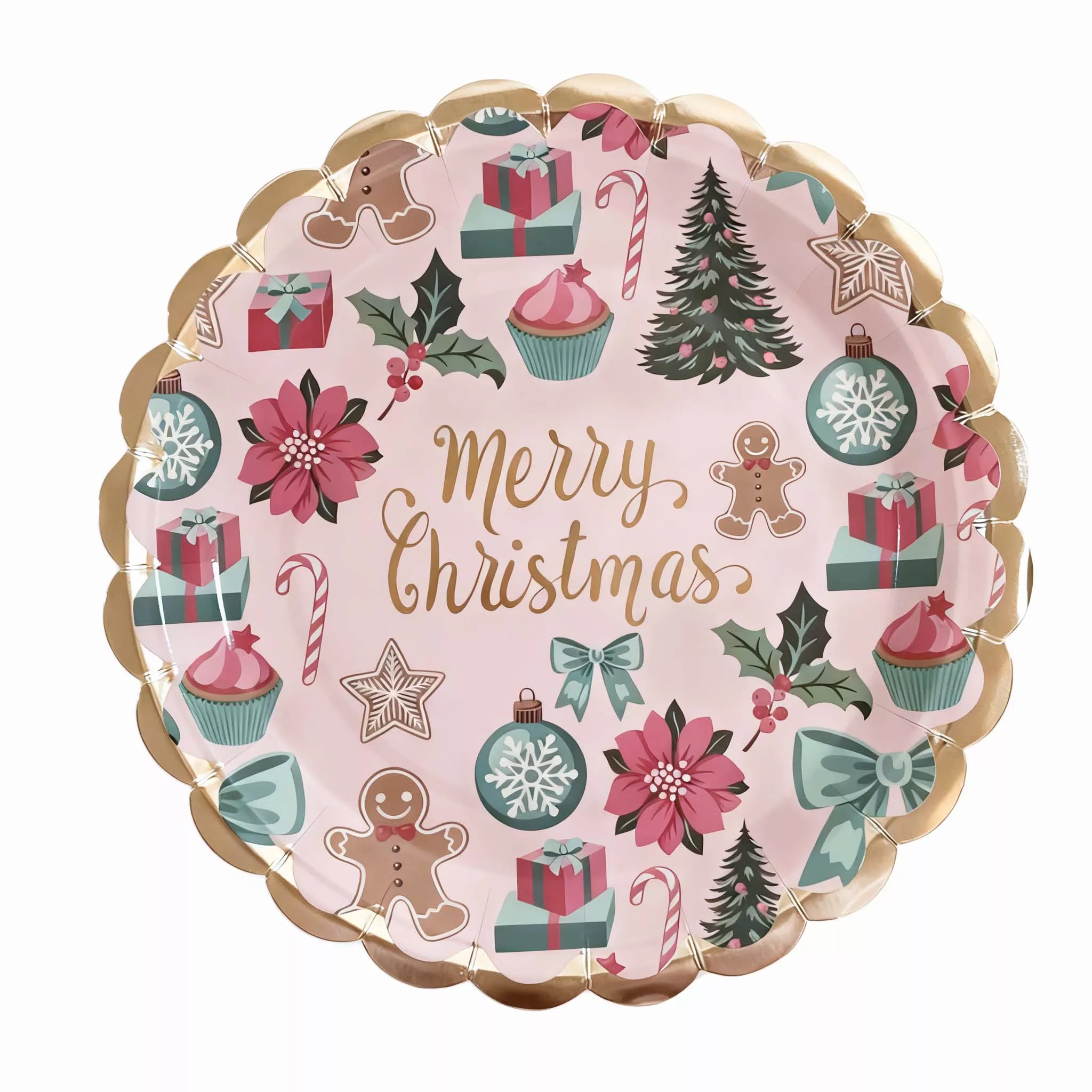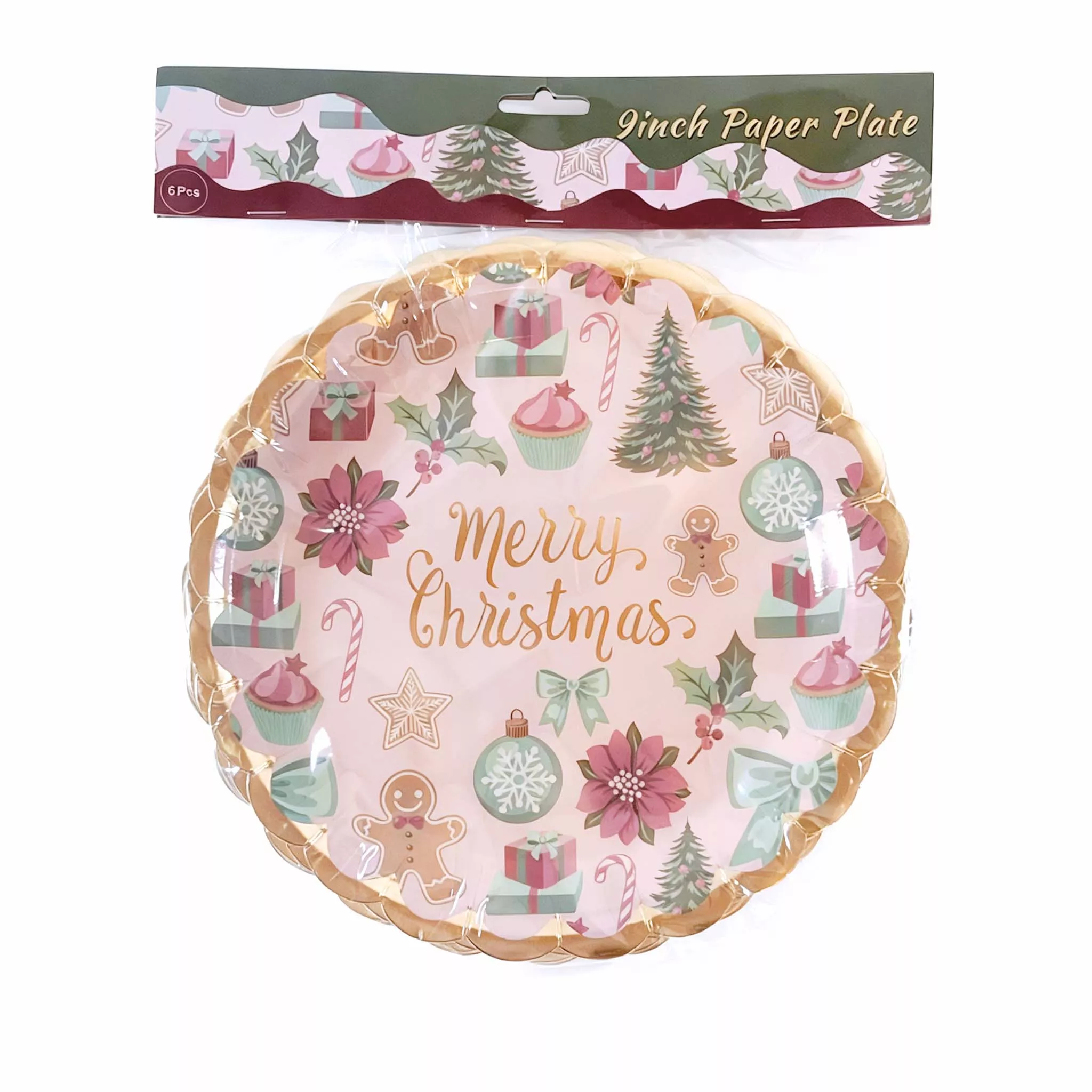 9 Inch Christmas Pink Wave Paper Plate 6pcs
