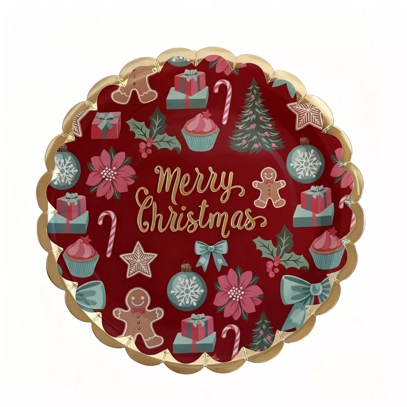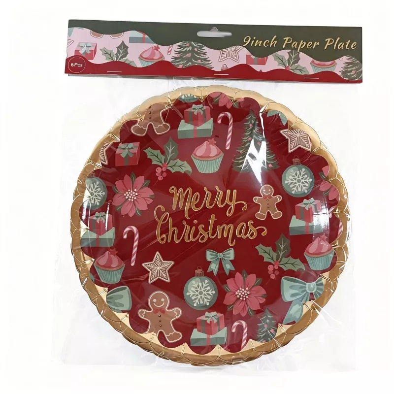 9 Inch Christmas Red Wave Paper Plate 6pcs