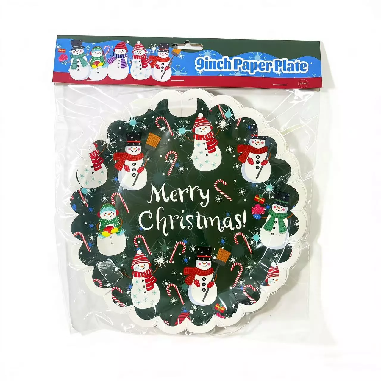 9 inch Green Snowman Christmas Wave Paper Plate 6pcs