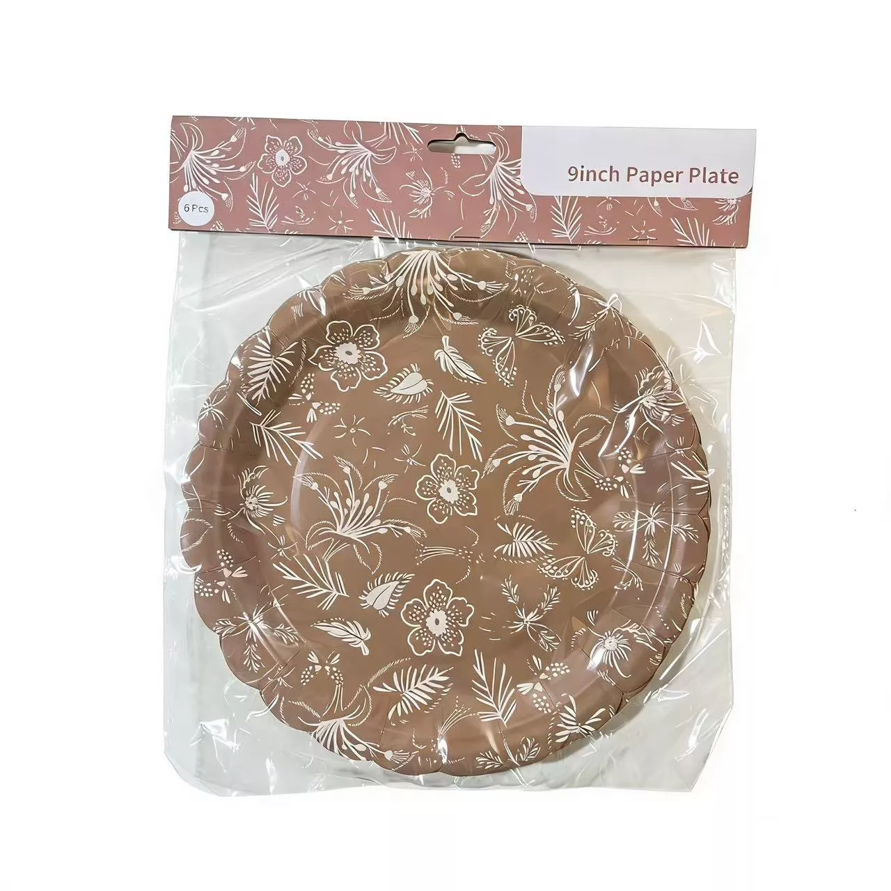 9 Inch Kraft Flower Wave Paper Plate 6pcs