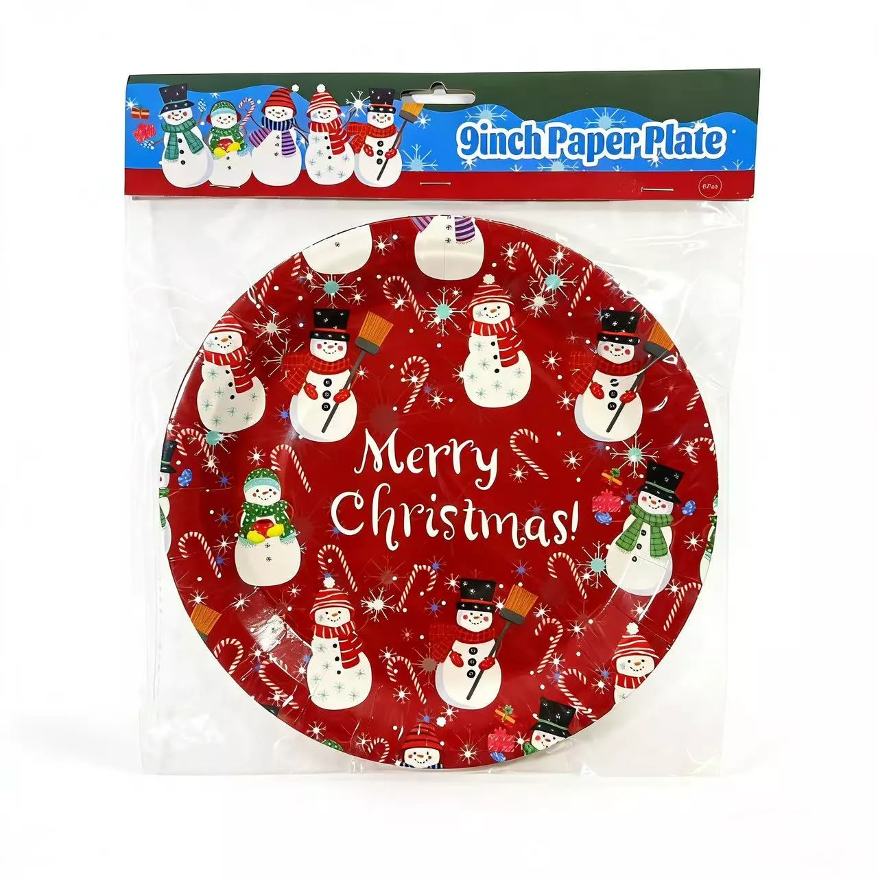 9 inch Red Snowman Christmas Paper Plate 6pcs