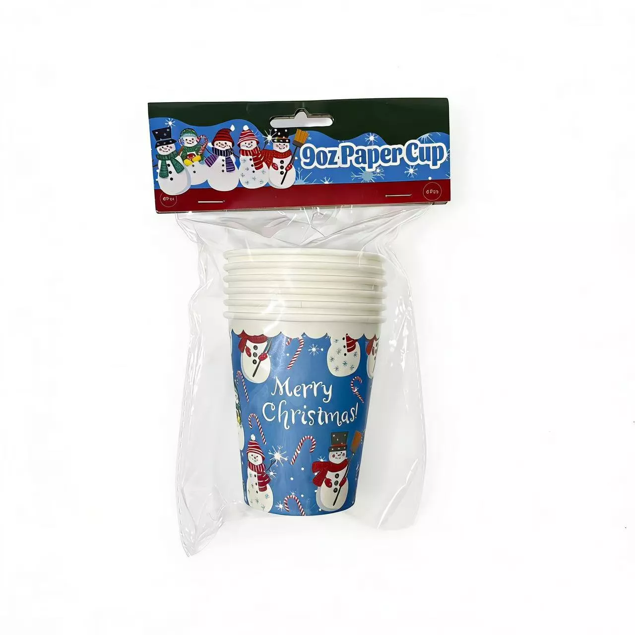 9oz Blue Snowman Christmas Paper Cup 6pcs