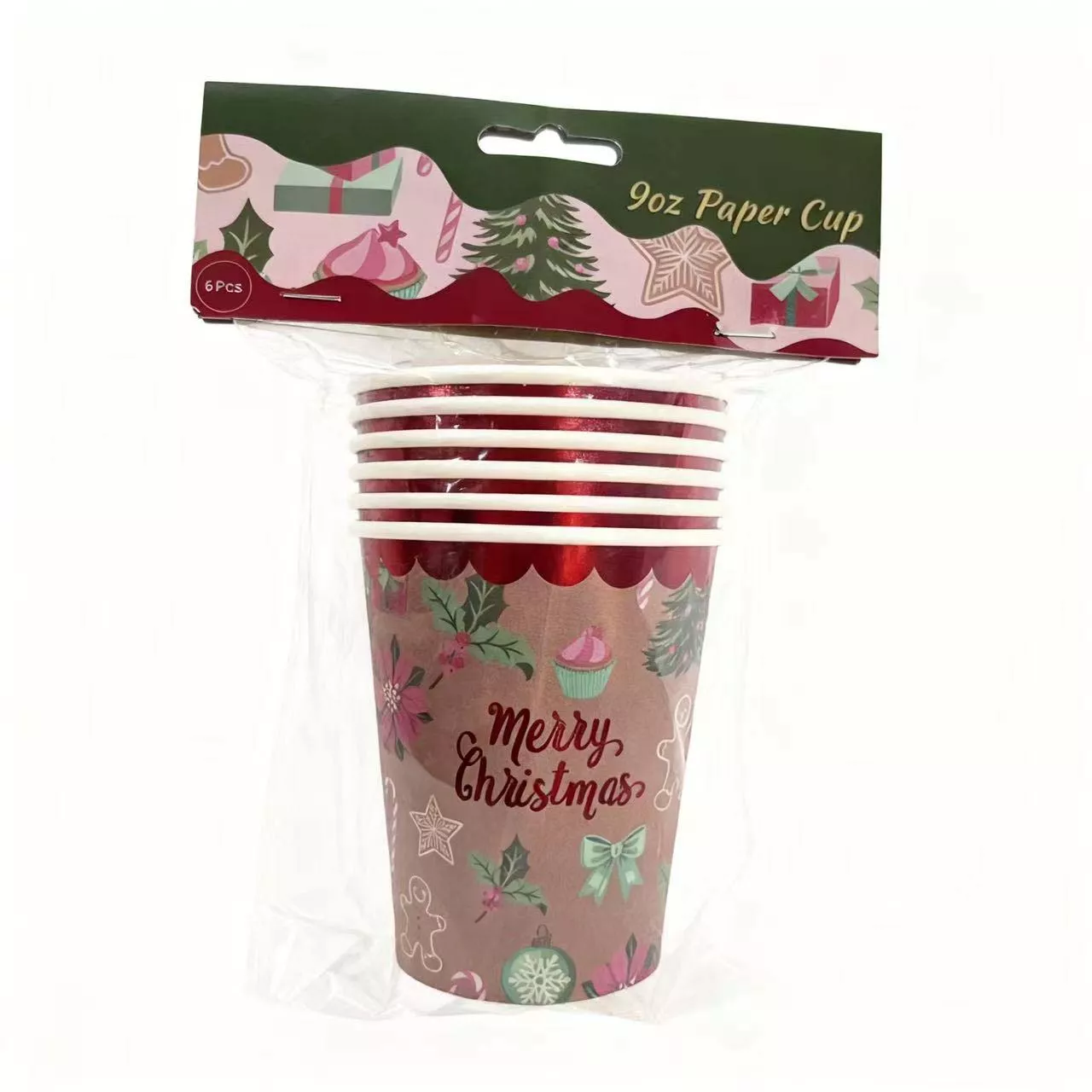 9oz Christmas Brown Wave Paper Cup 6pcs