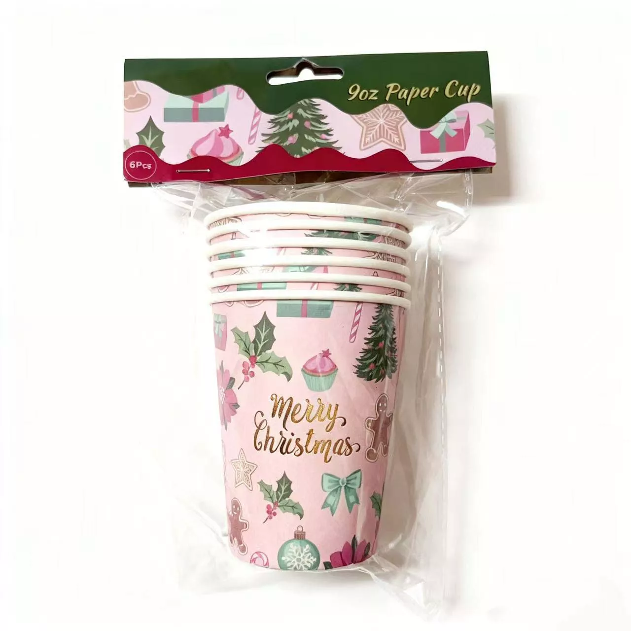 9oz Christmas pink Paper Cup 6pcs