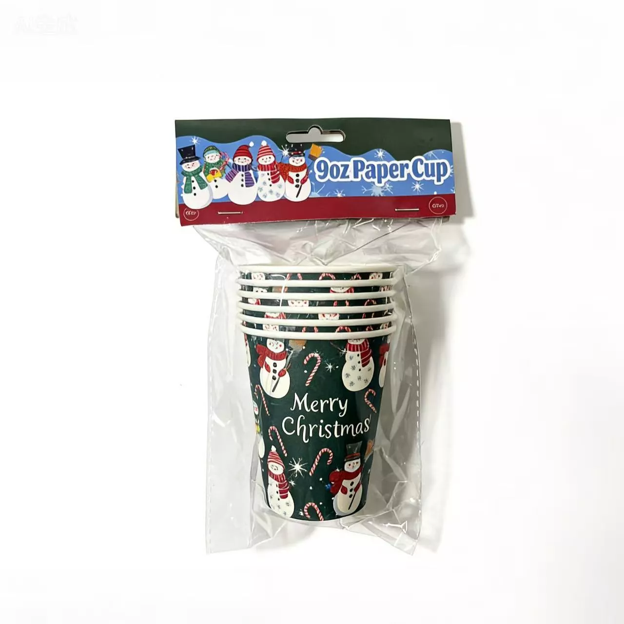 9oz Green Snowman Christmas Wave Paper Cup 6pcs