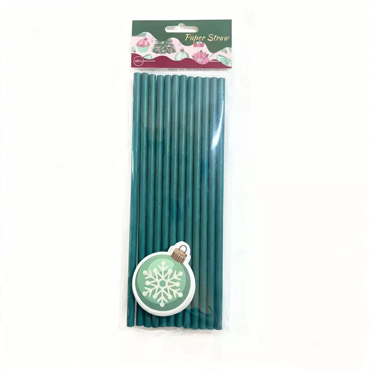 Green Christmas Paper Straw 12pcs
