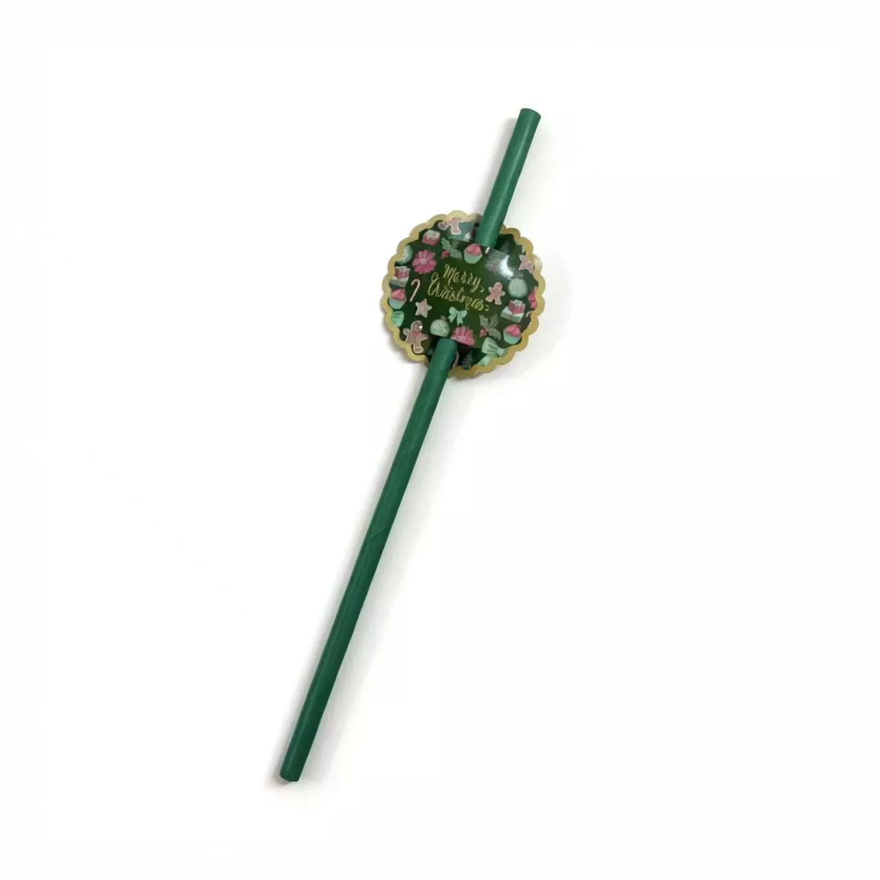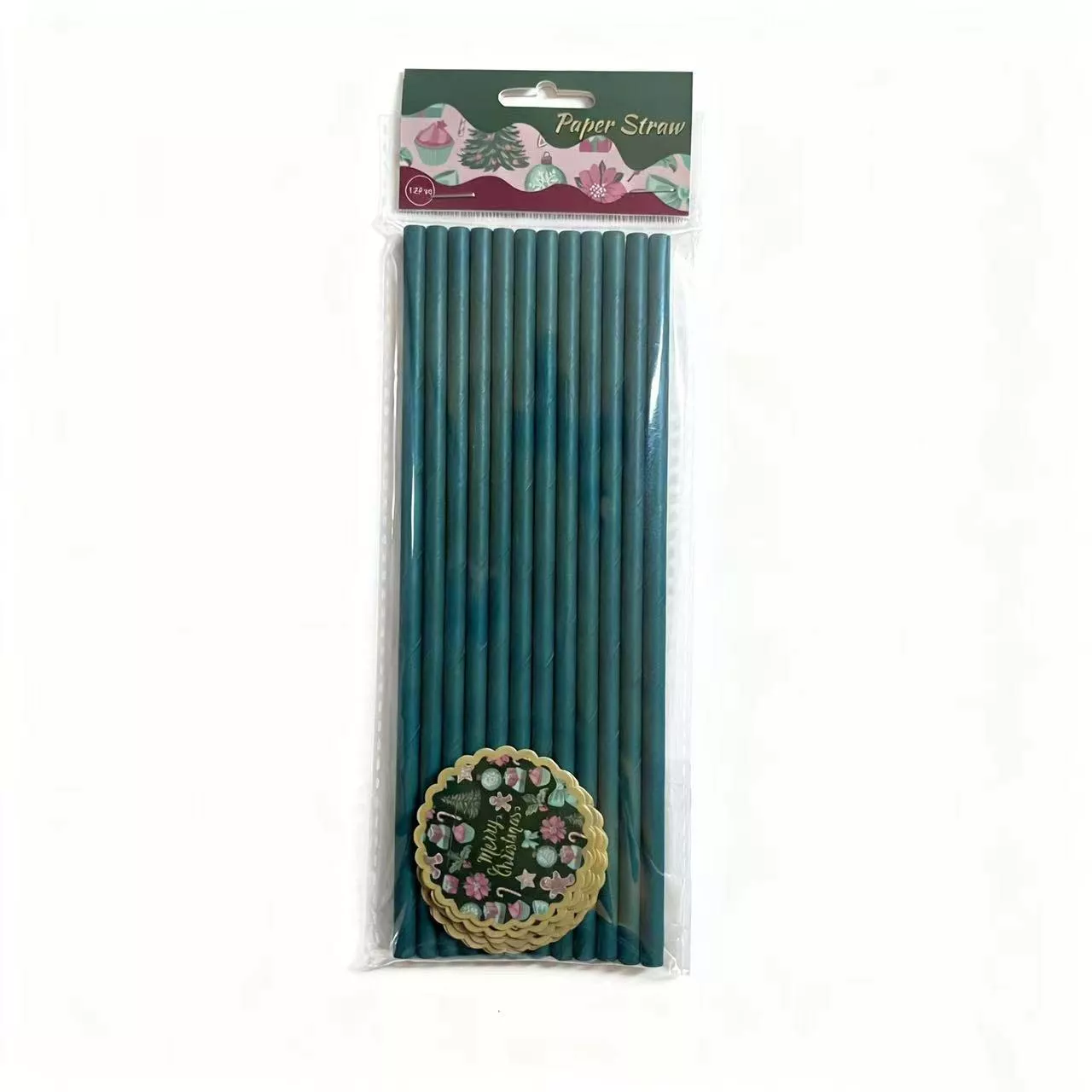 green Christmas wave Paper Straw 12pcs