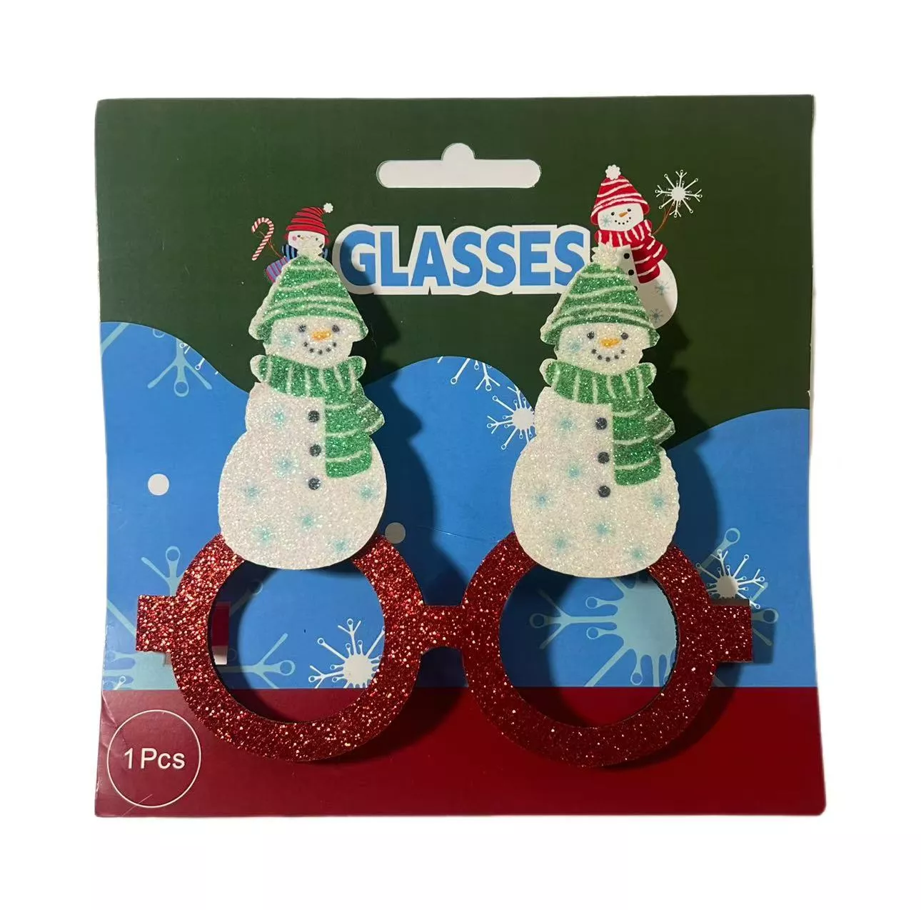 Green Snowman Christmas Glasses 1pcs