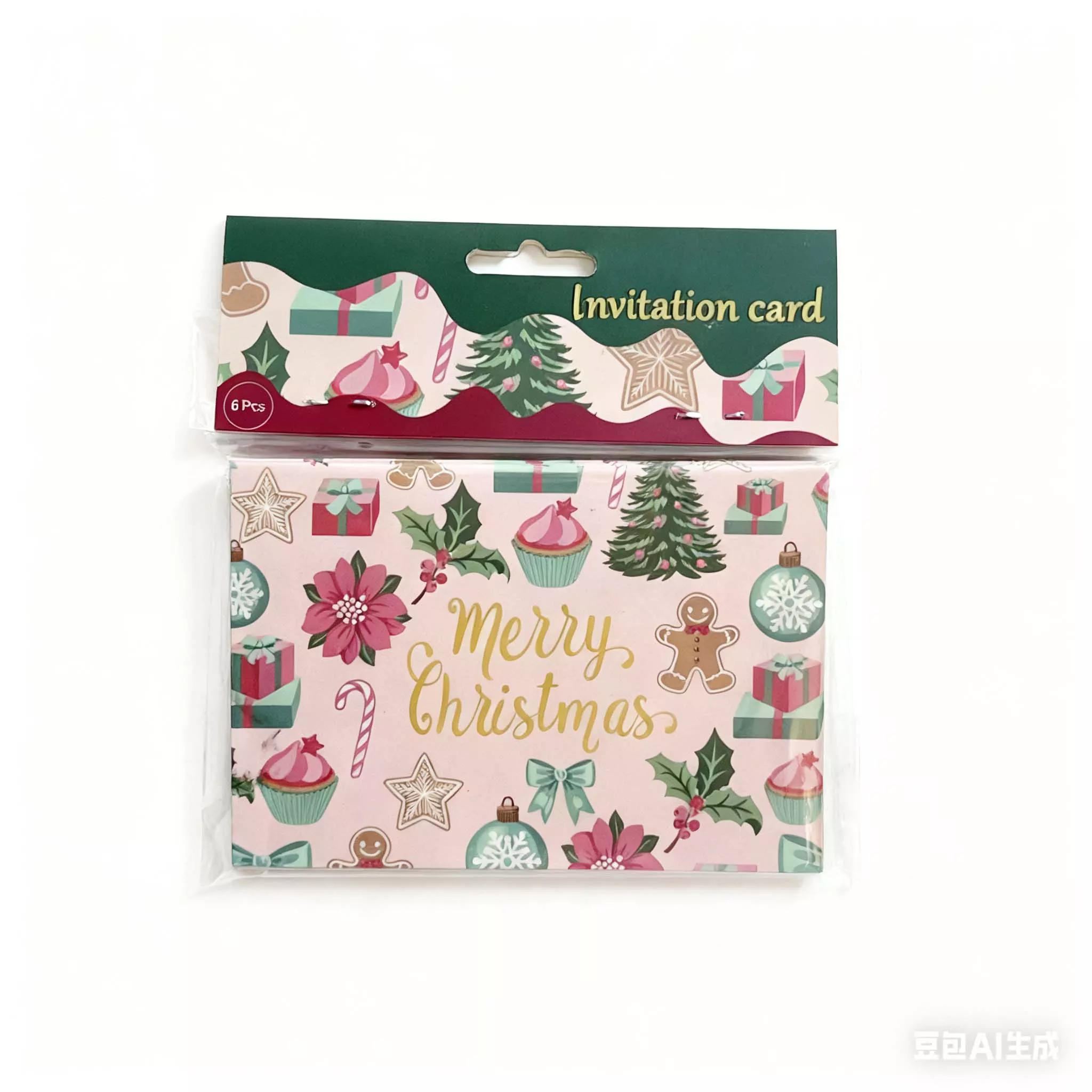 Pink Christmas Invitation Card 6pcs