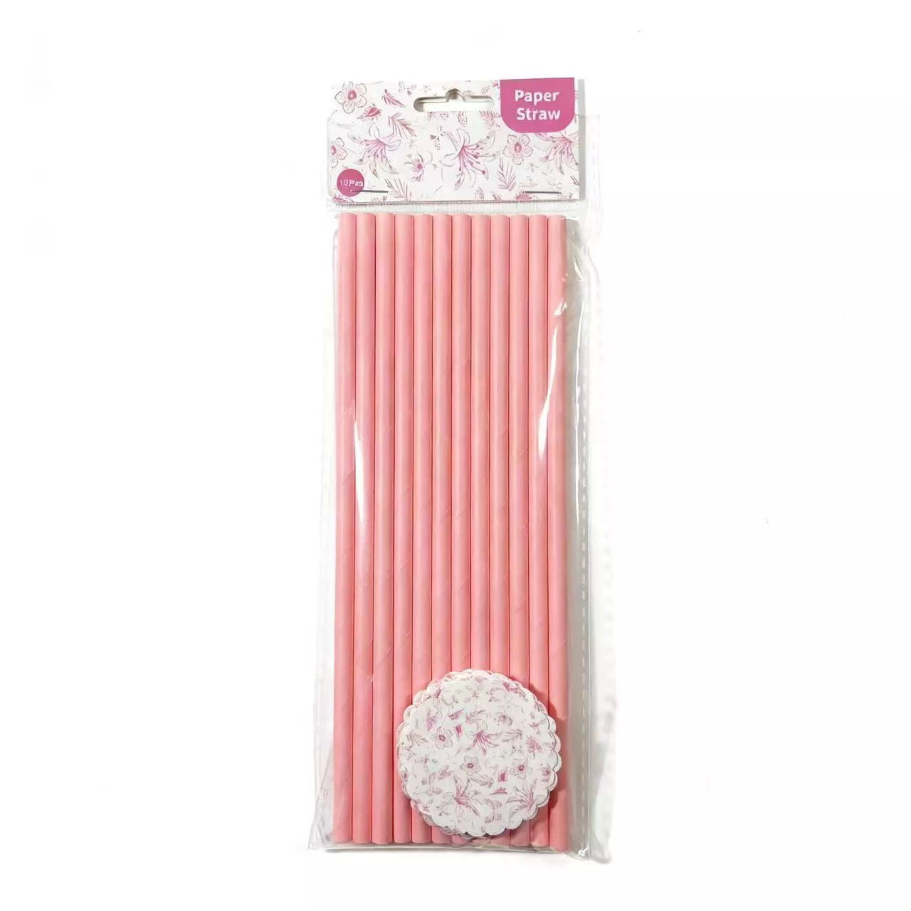Pink Flower Paper Straw 12pcs
