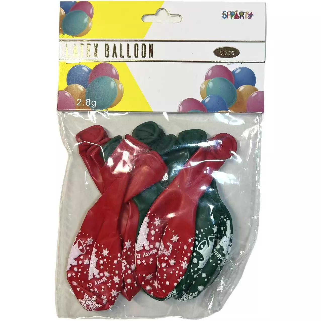 2.8g Red and Green Christmas Printed Latex Balloon 8pcs Per Pack