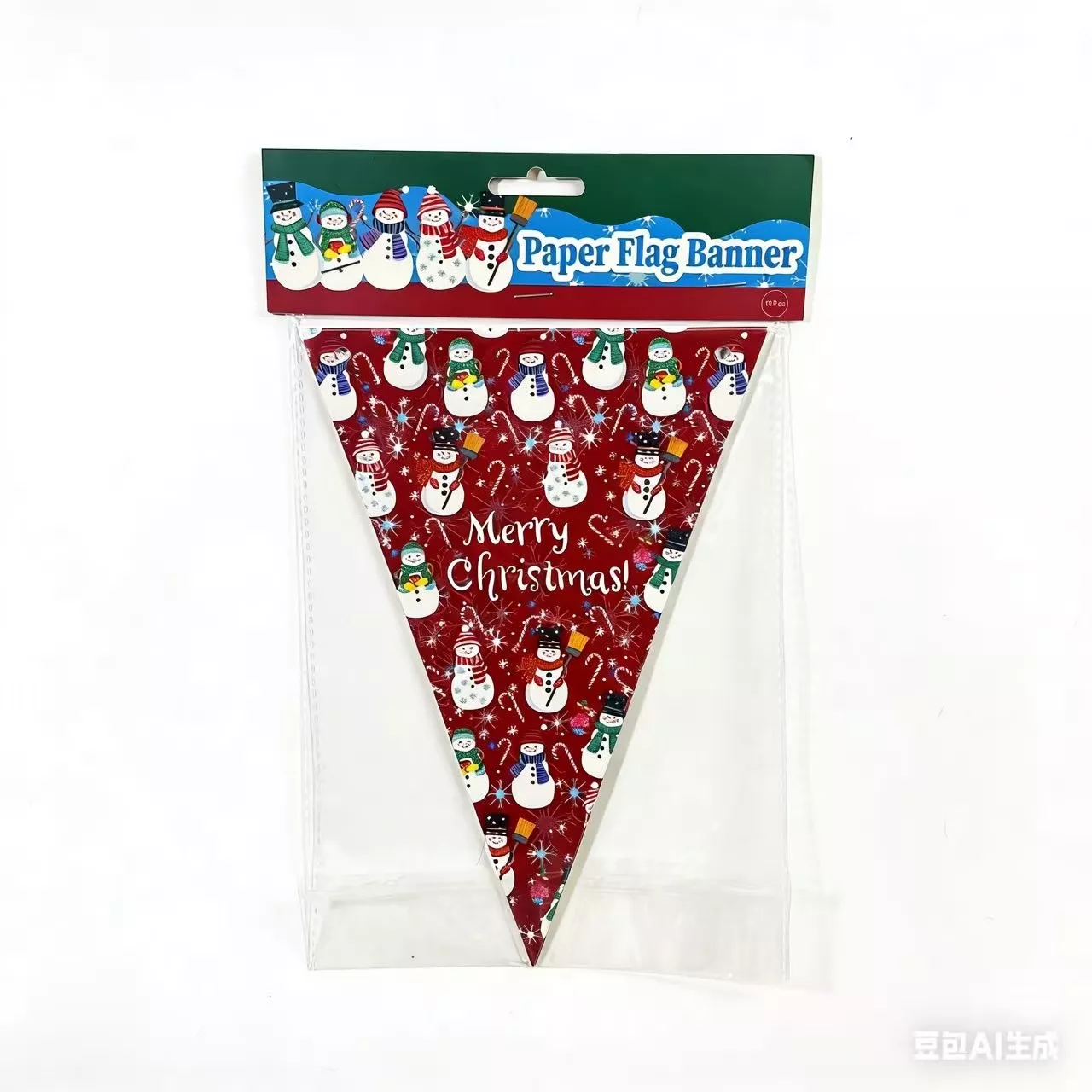 Red Snowman Christmas Paper Flag Banner 10pcs