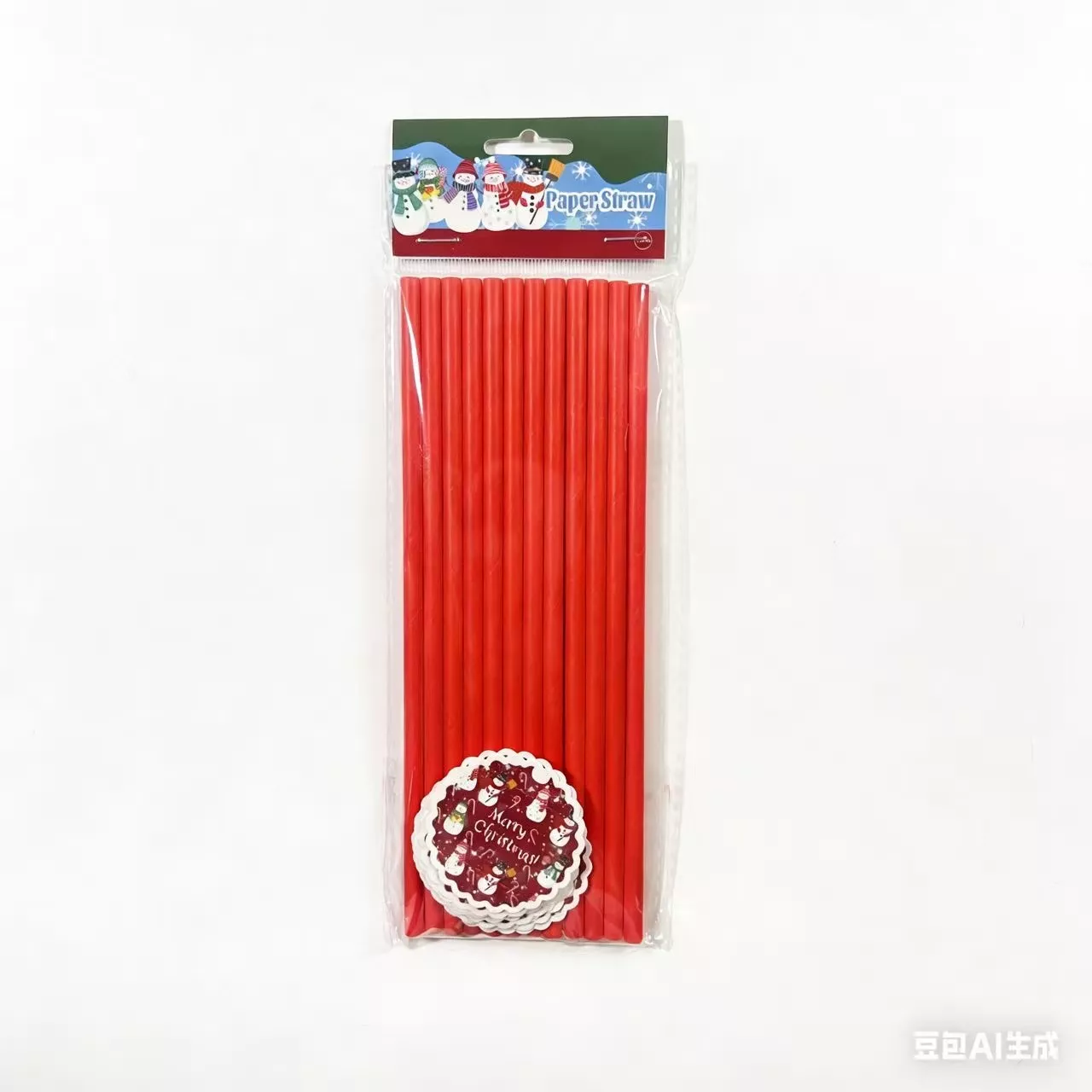 Red Snowman Christmas Wave Paper Straw 12pcs