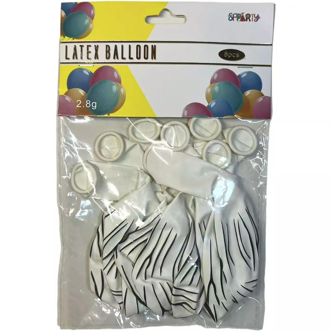 2.8g White Strip Printed Latex Balloon 8pcs Per Pack